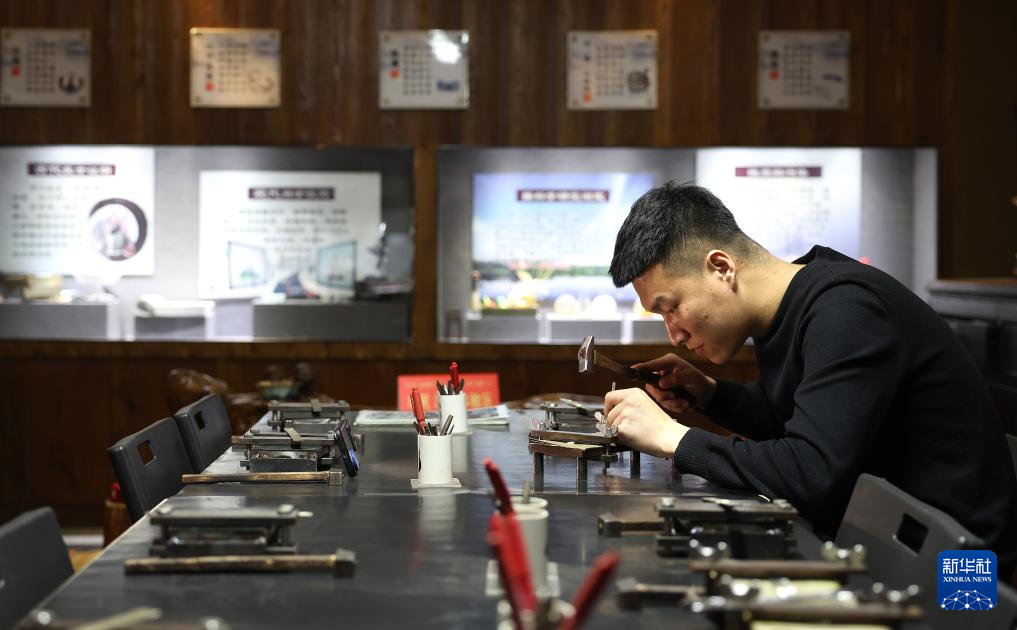 3月11日,孫朋對加熱后的銀料進行鍛打塑型。