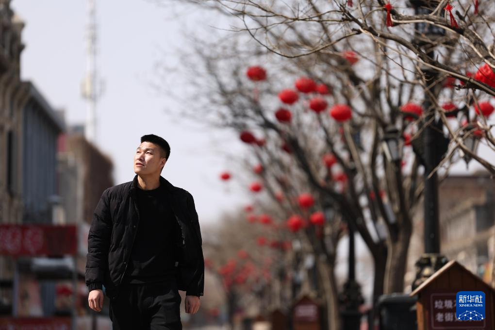 3月13日,孫朋走在遼寧省營口市遼河老街上。