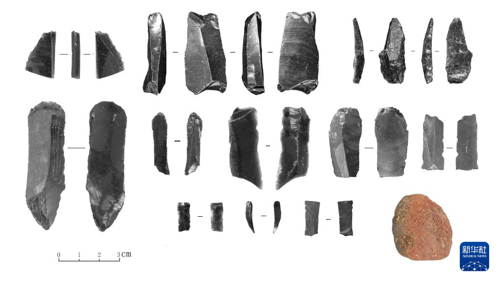 和龍大洞遺址第三期文化層(距今1.7萬年-1.5萬年)出土石制品(資料照片)。新華社發