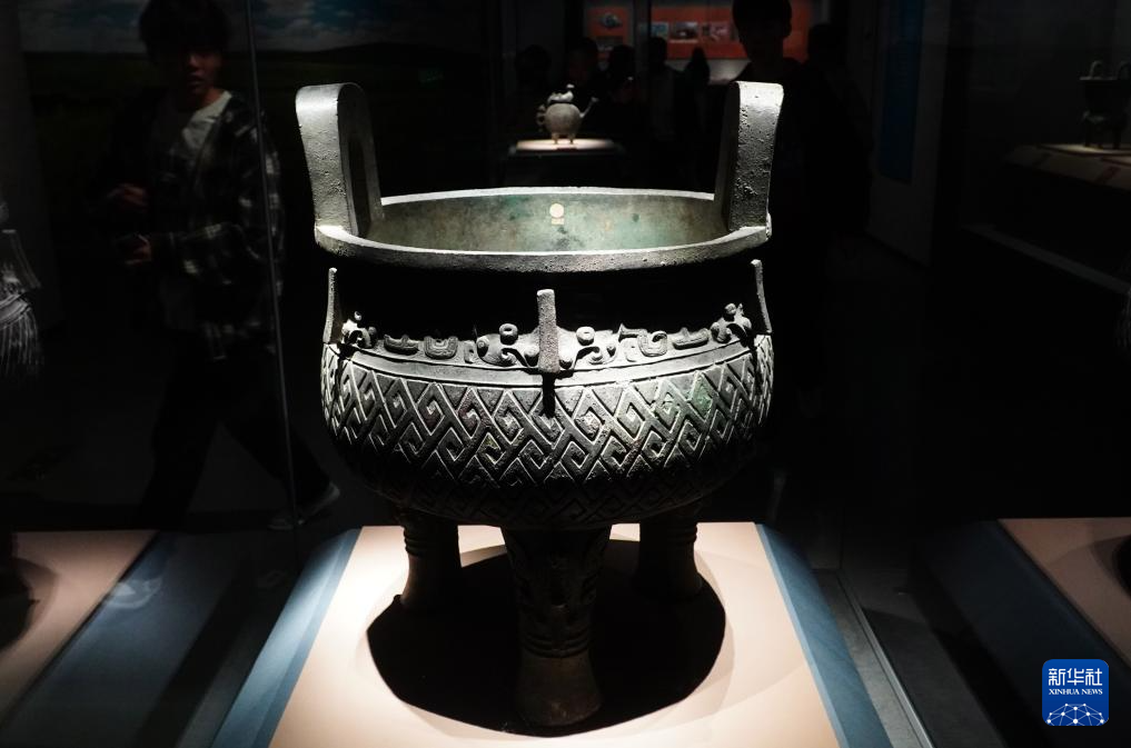 作寶銅鼎在山東博物館舉辦的鄂爾多斯青銅文明展上展出(4月5日攝)。