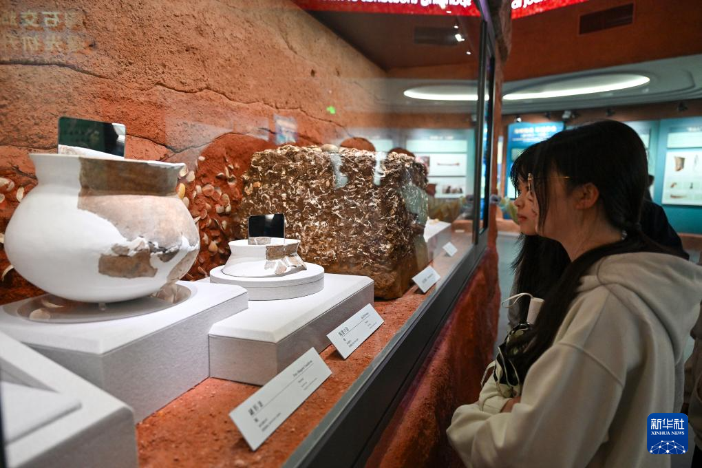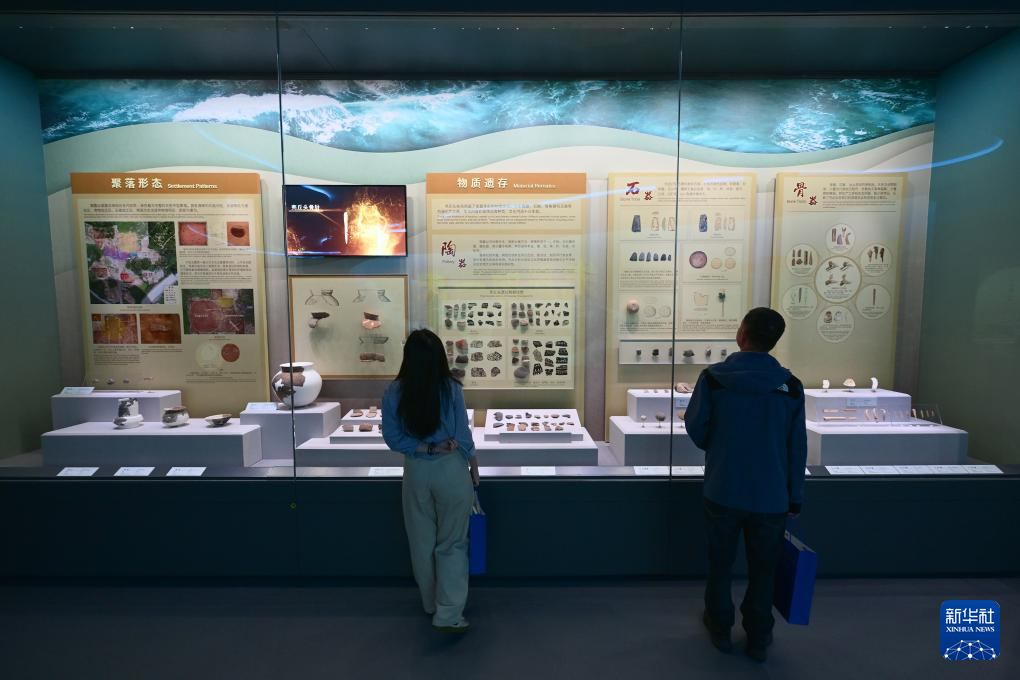 4月9日,觀眾在中國考古博物館殼丘頭分館內參觀。