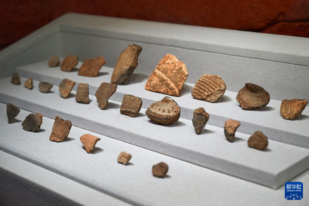 這是中國考古博物館殼丘頭分館的展品陳列(4月8日攝)。