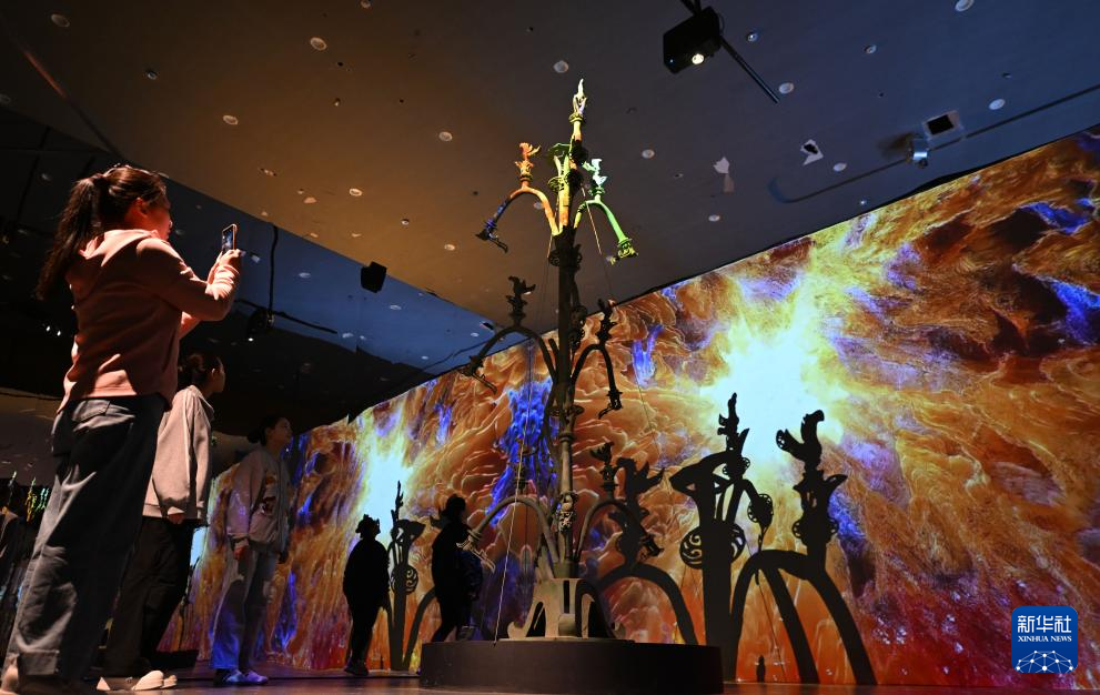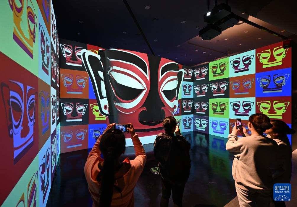 4月22日,觀眾在觀看“一醒驚天下·三星堆沉浸式光影藝術展”。