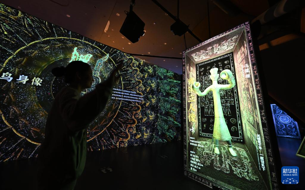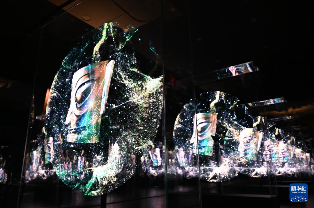 這是“一醒驚天下·三星堆沉浸式光影藝術展”中設置的裸眼全息展區(4月22日攝)。