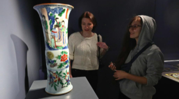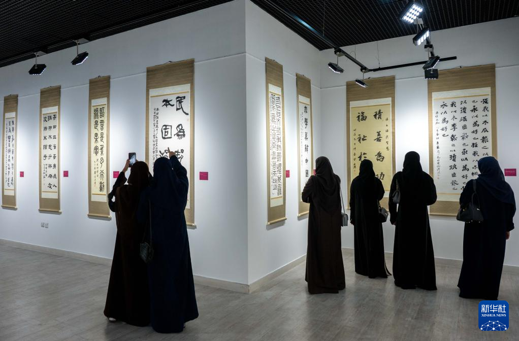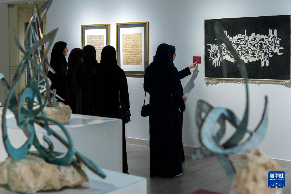 4月24日,人們參觀卡塔爾多哈卡塔拉文化村舉行的中卡書法交流展。