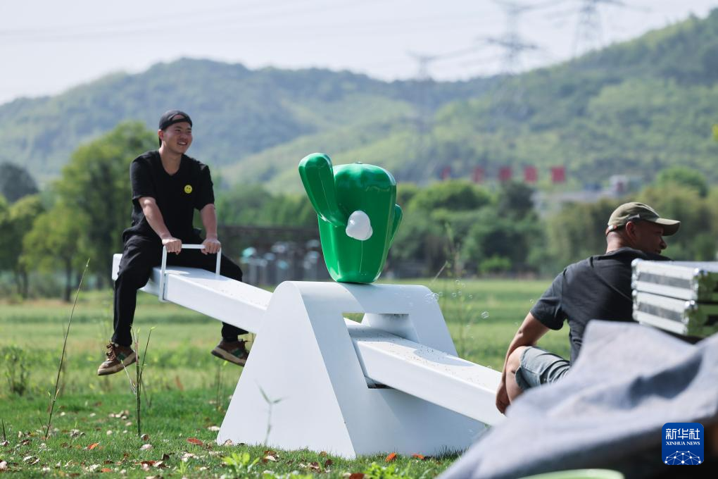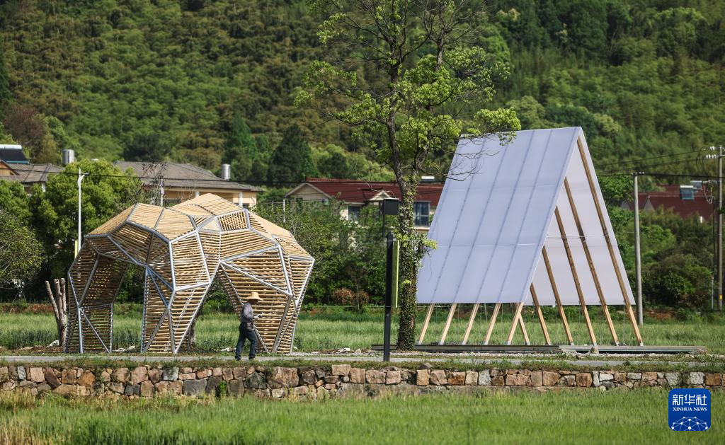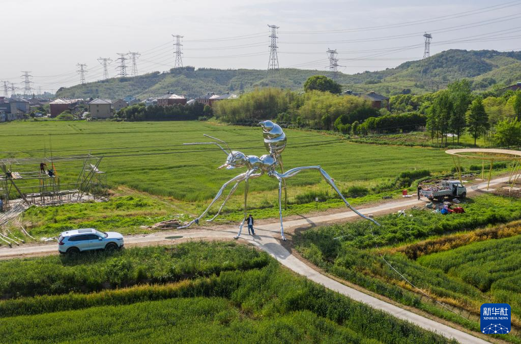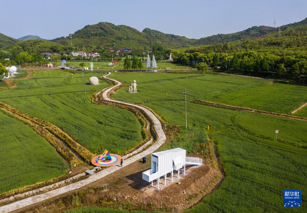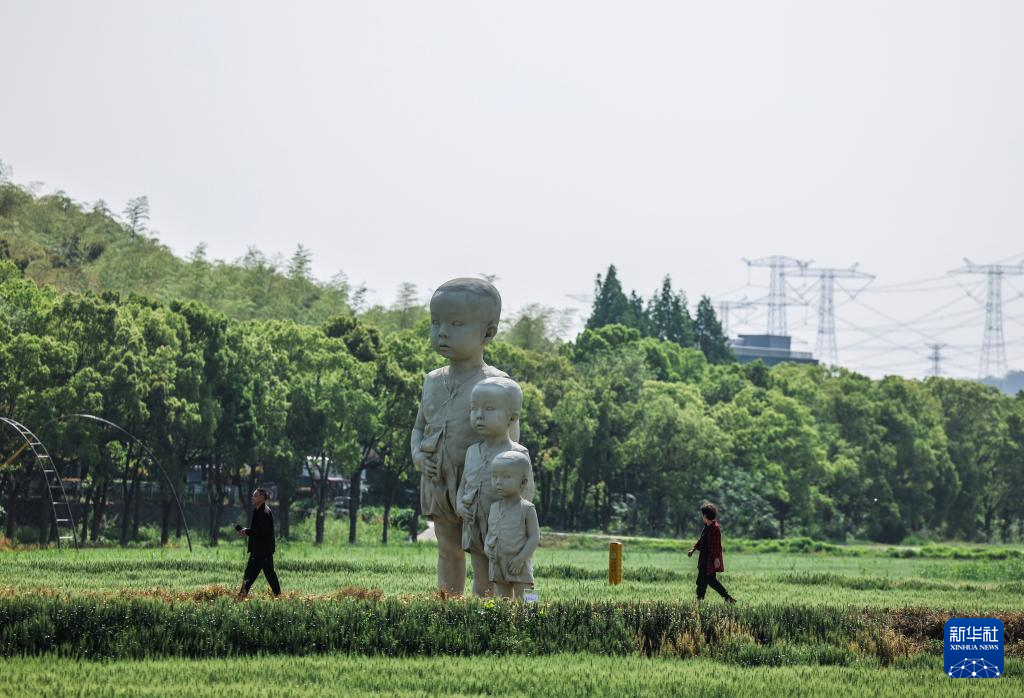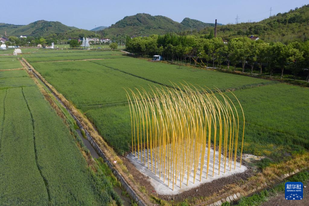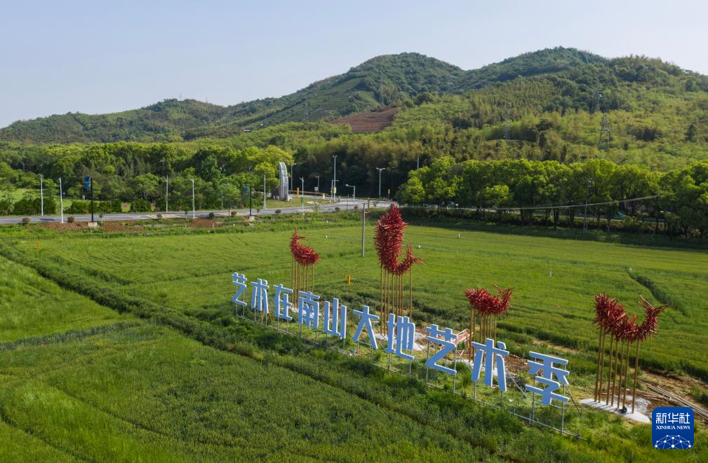 當日,“藝術在南山·大地藝術季”在浙江省湖州市吳興區東林鎮的麥田開幕?;顒勇撌种袊嗉颐佬g學院的師生作為主創團隊,在東林鎮田野與村落中創作42件在地性大地藝術作品,以廣袤大地為畫布、以自然元素為媒介,將藝術裝置、景觀藝術等多元藝術形式巧妙融入田野與村落,精心構建“沒有屋頂的美術館”,讓游客和當地群眾在鄉野間品味藝術。