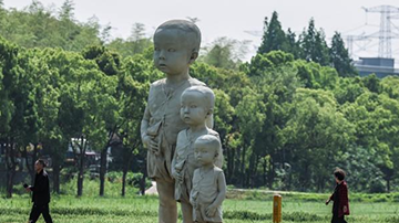 這是5月6日在波蘭首都華沙拍攝的海豹樹枝雕塑。