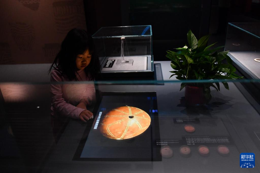 5月10日,游客在岳陽市博物館觀看視頻。