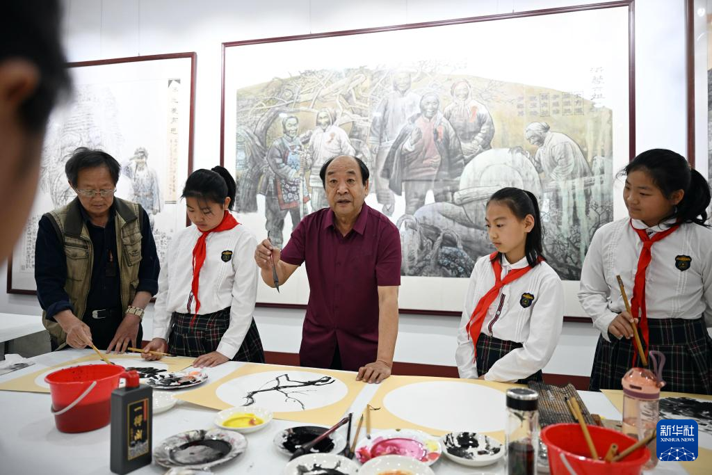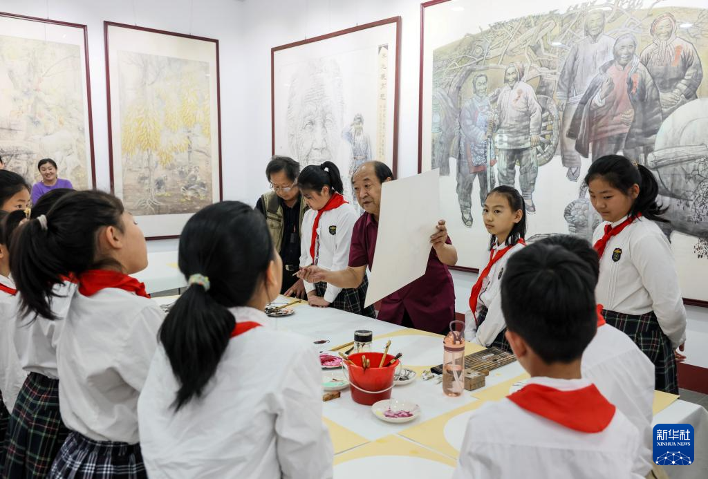 今年是中國人民抗日戰爭暨世界反法西斯戰爭勝利80周年,在沂蒙革命老區山東省日照市莒縣,小學生們走進沂蒙畫派研究院,學習繪畫知識,欣賞繪畫作品,聆聽畫作背后的沂蒙故事,感受沂蒙精神,接受愛國主義教育。