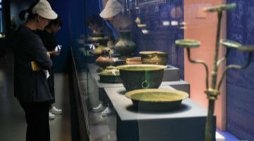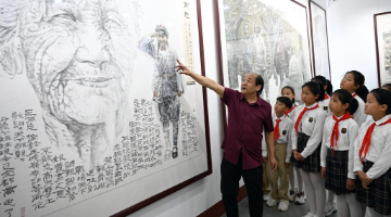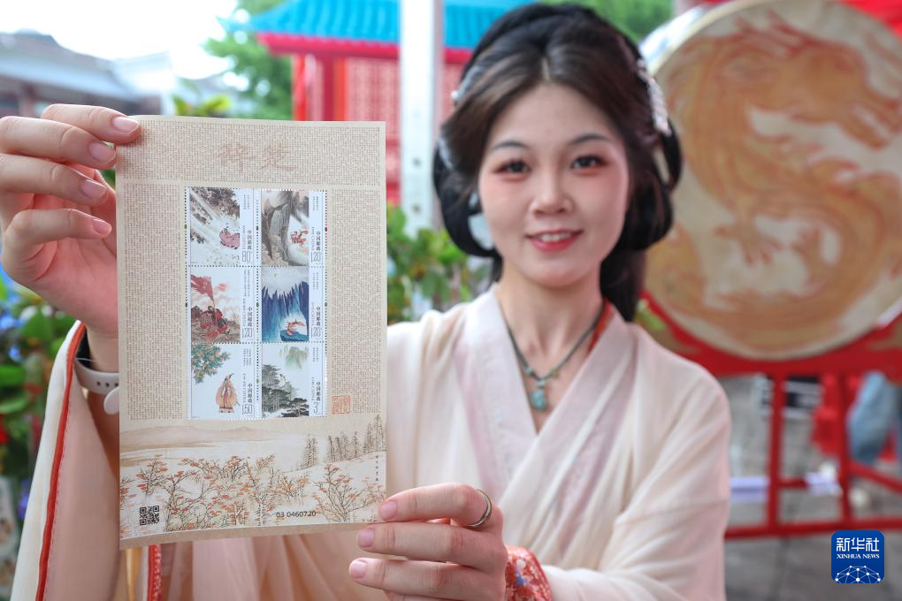 5月31日,在湖北省襄陽市昭明臺廣場舉行的《楚辭》特種郵票首發式上,工作人員展示《楚辭》特種郵票。