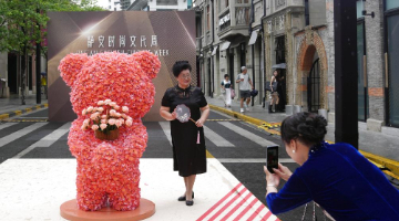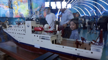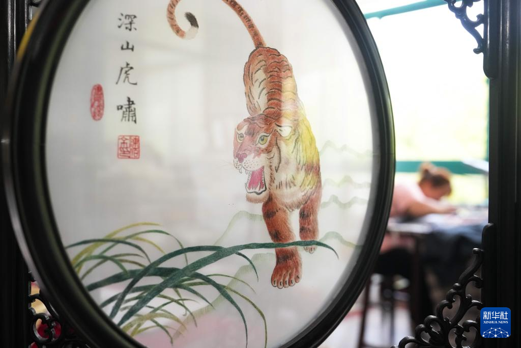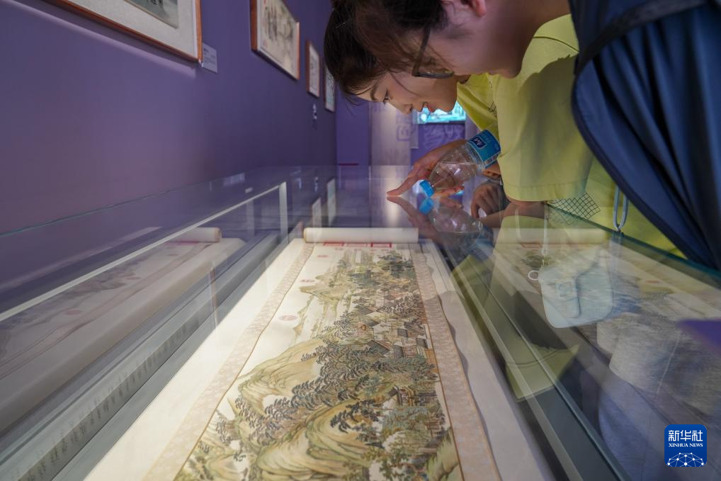 6月6日,在東臺西溪天仙緣景區內的東臺發繡展示館,游客觀賞發繡長卷《姑蘇繁華圖》。