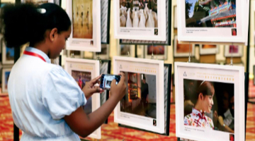 6月6日在東臺市博物館拍攝的以花鳥為題材的發繡作品。