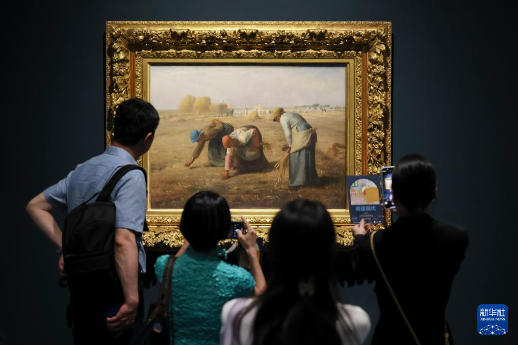 6月18日,受邀嘉賓在“締造現代:來自巴黎奧賽博物館的藝術瑰寶”展覽現場欣賞米勒的《拾穗者》。