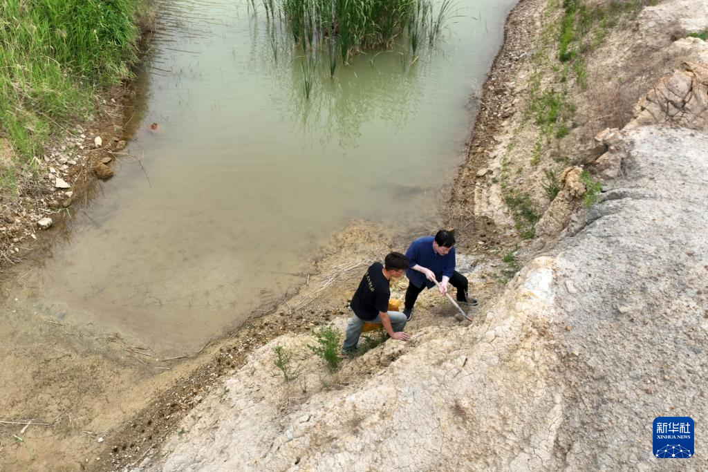 6月28日,張志忠(右)帶著學生在尋找燒制瓷器的原料(無人機照片)。