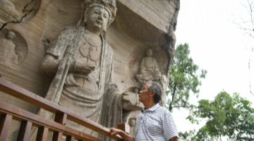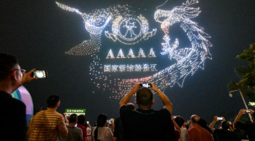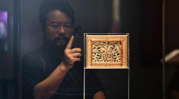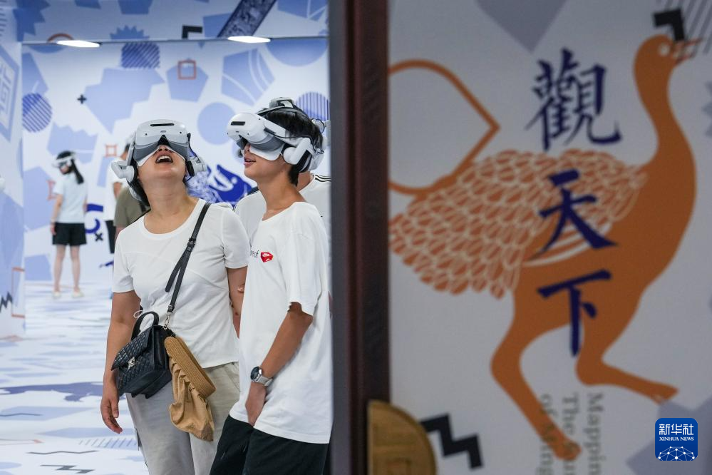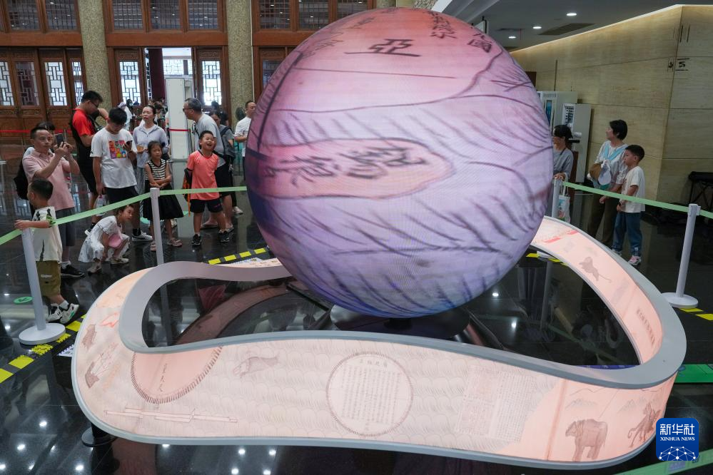 7月10日,觀眾在南京博物院觀看展覽的球形視頻介紹。