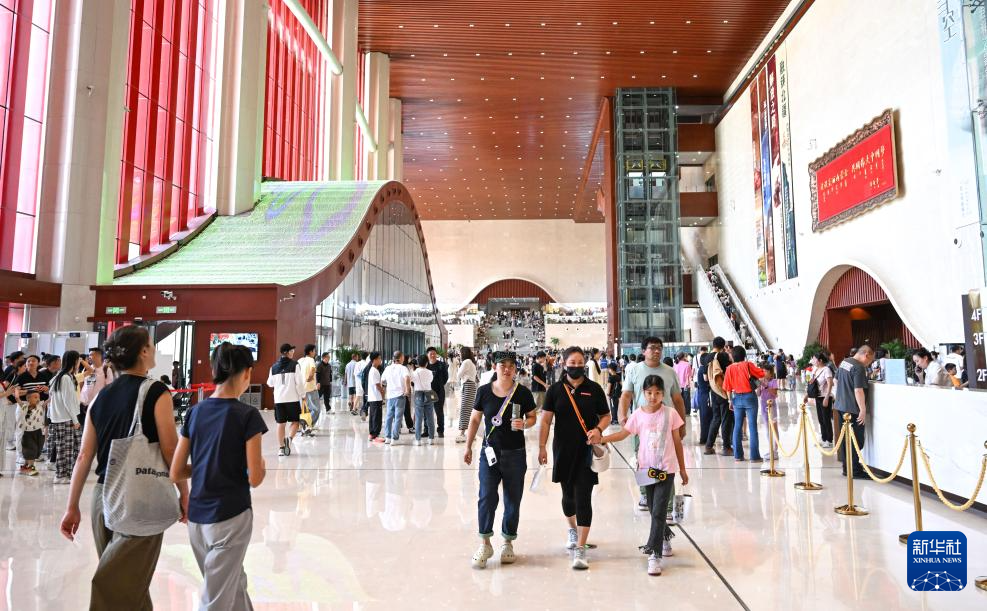 7月30日,游客在內蒙古呼和浩特市內蒙古博物院新館參觀。