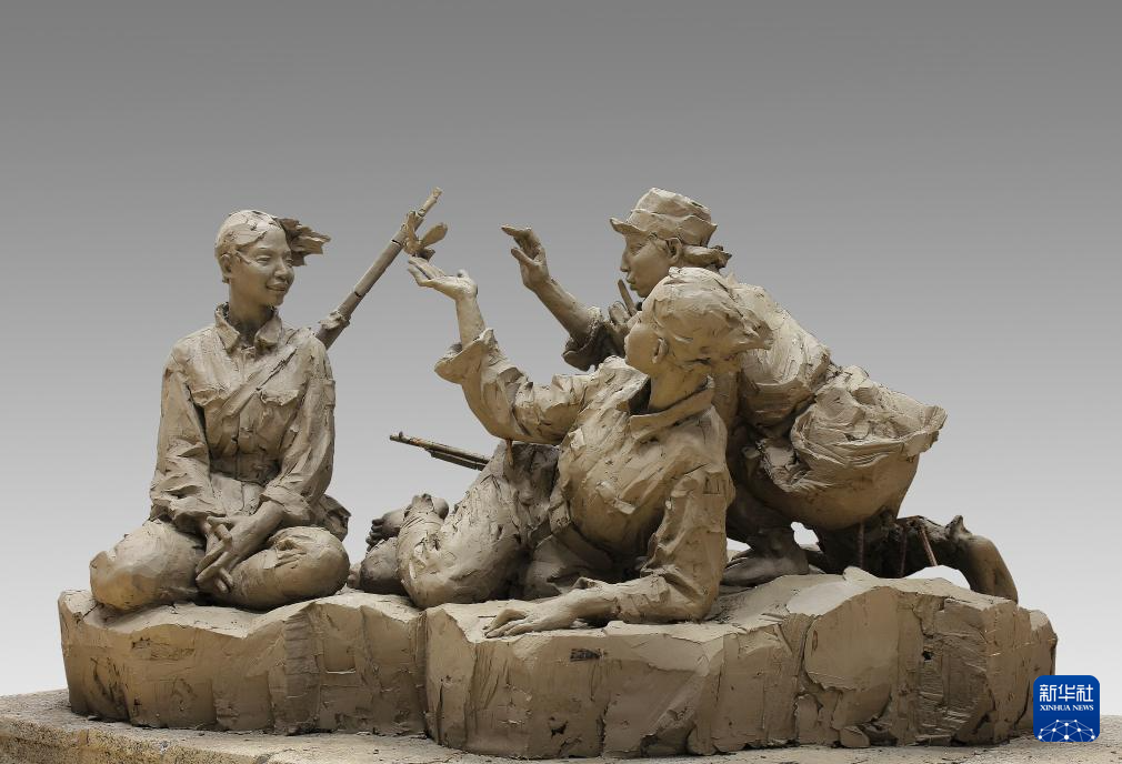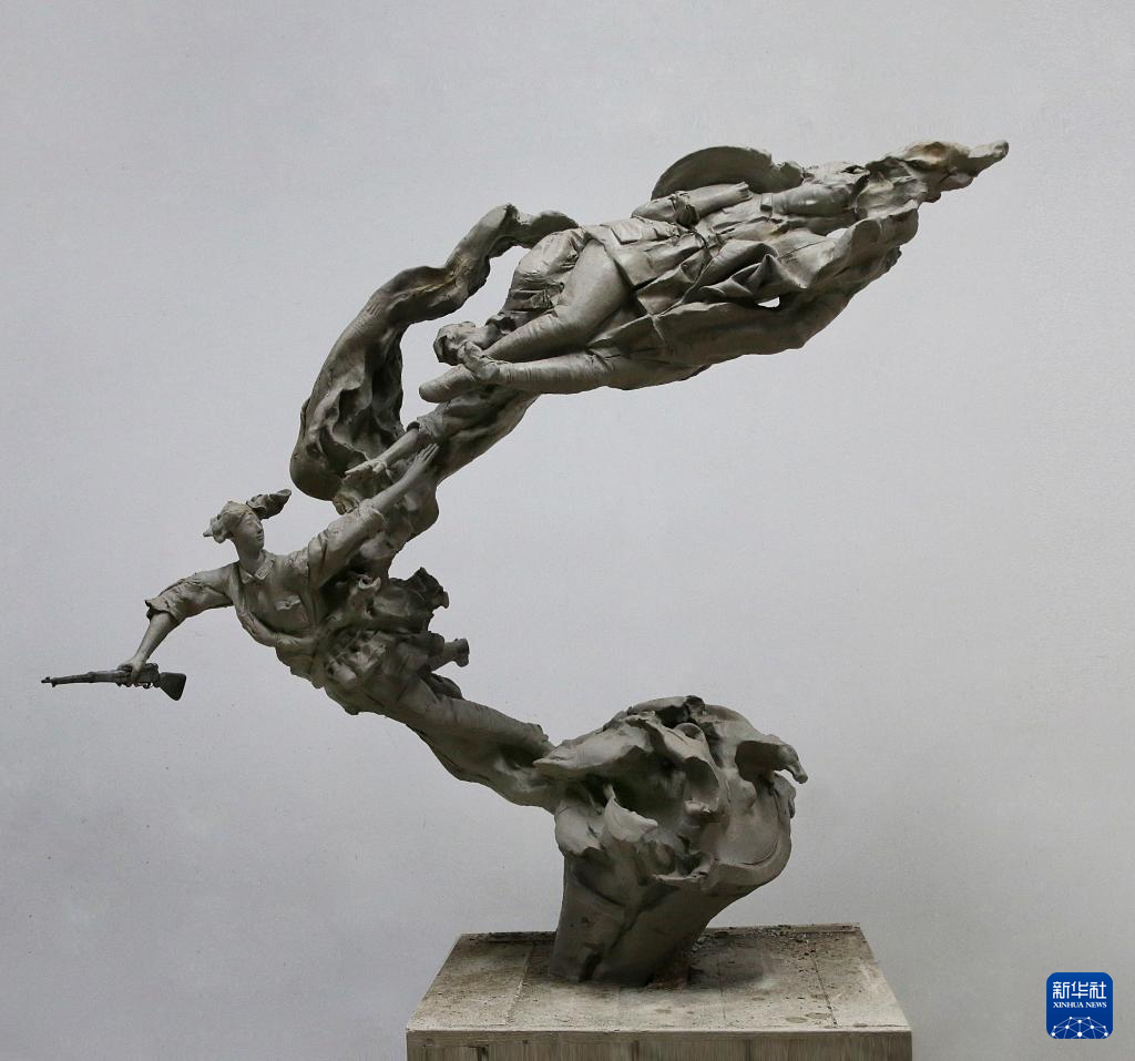 這是國防大學軍事文化學院副教授王樹山的雕塑作品《紅色記憶》。