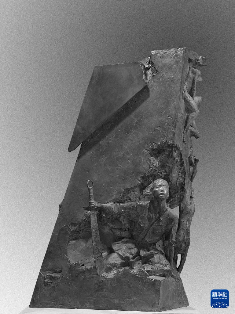 這是中國人民革命軍事博物館創作員談強創作的雕塑《英魂碧血染山河》。