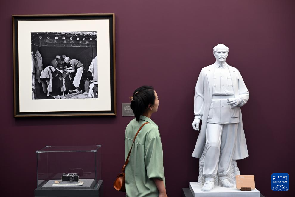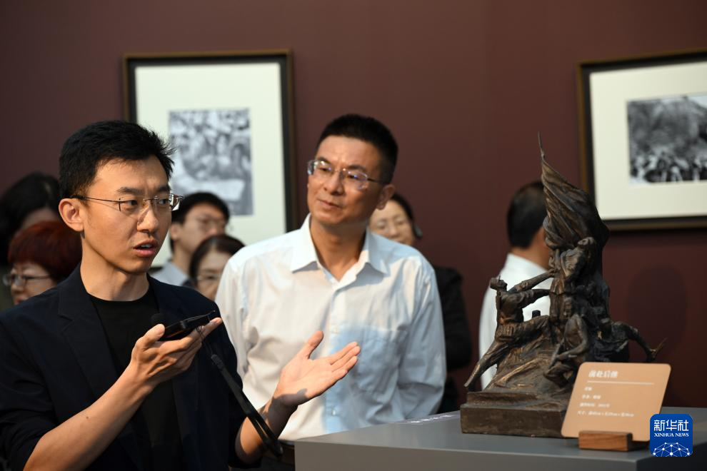 8月26日,由新華通訊社主辦的“國社之鏡·世紀光影之人民必勝”藝術展在北京國家金融信息大廈開展。展覽共分為五個篇章,以中國戰場為主視角,通過140余張珍貴歷史照片、抗戰文物和十余件著名藝術家的繪畫及雕塑作品,鋪展出一幅氣壯山河的抗戰全景圖。