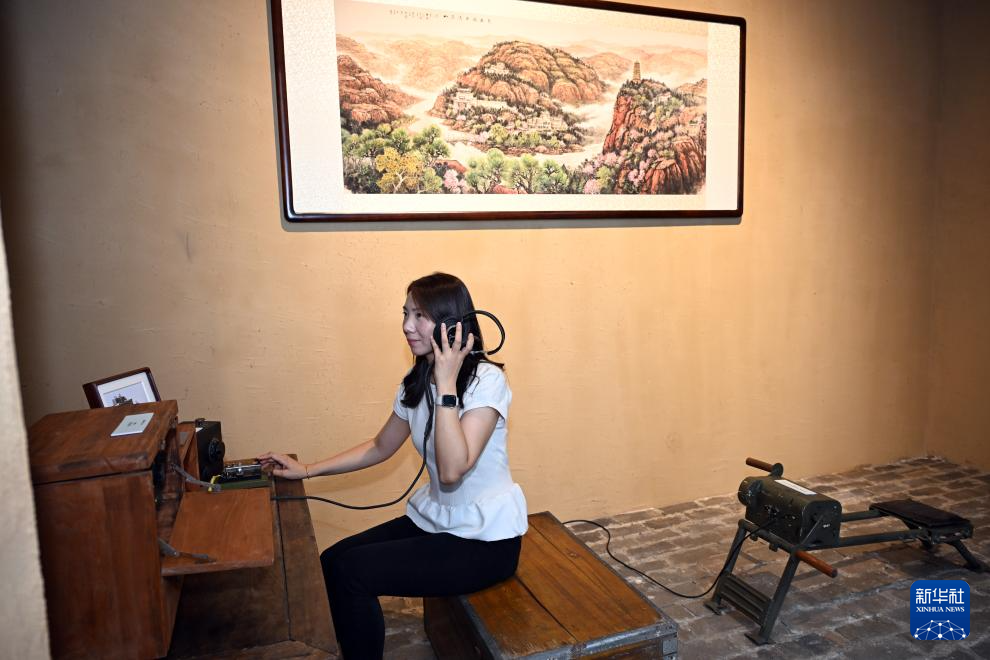 8月26日,觀眾體驗延安時期新華社使用過的小型收發報機和手搖馬達模型。