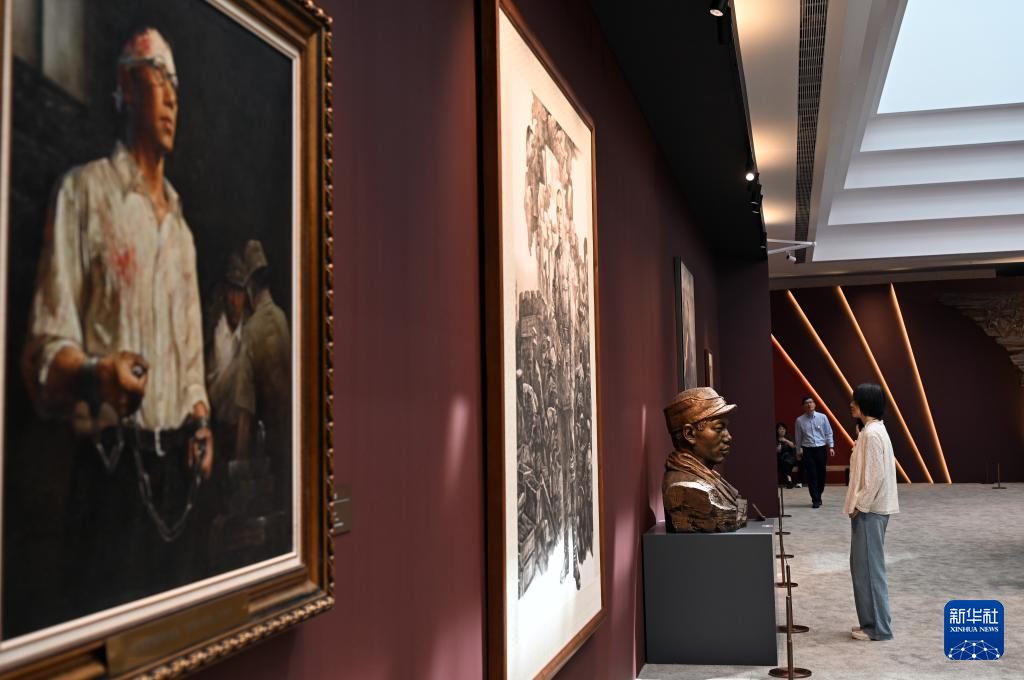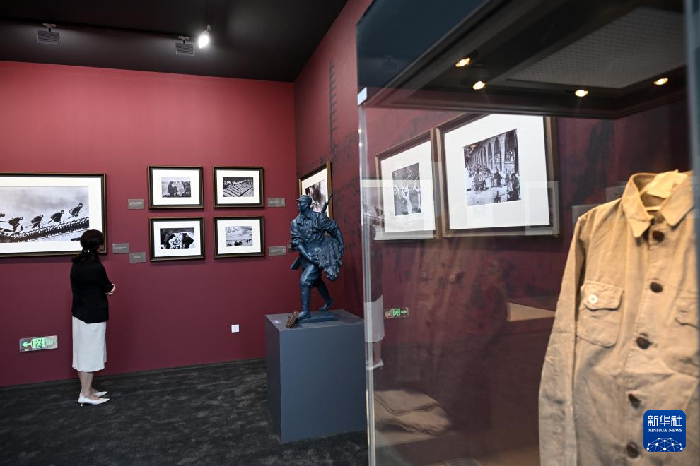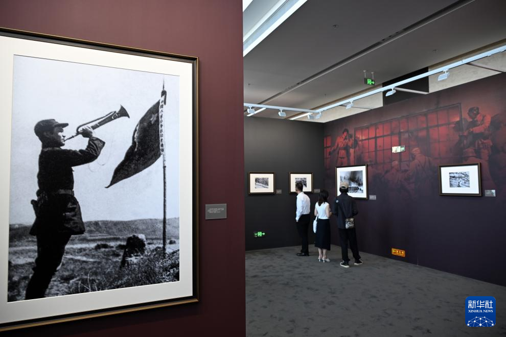 新華社北京8月26日電 由新華通訊社主辦的“國社之鏡·世紀光影之人民必勝”藝術展26日在北京國家金融信息大廈開展。展覽共分為五個篇章,以中國戰場為主視角,通過140余張珍貴歷史照片、抗戰文物和十余件著名藝術家的繪畫及雕塑作品,鋪展出一幅氣壯山河的抗戰全景圖。