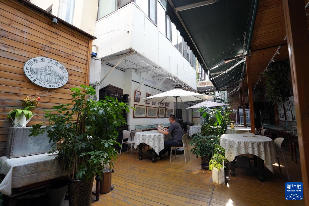 人們在位于哈爾濱市西十三道街的寬街博物館后院小憩(9月3日攝)。