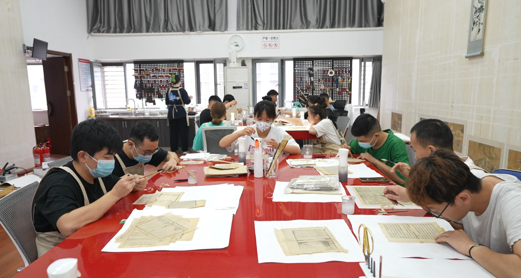 文物修復與保護專業的學生在修復古籍。(受訪單位供圖)