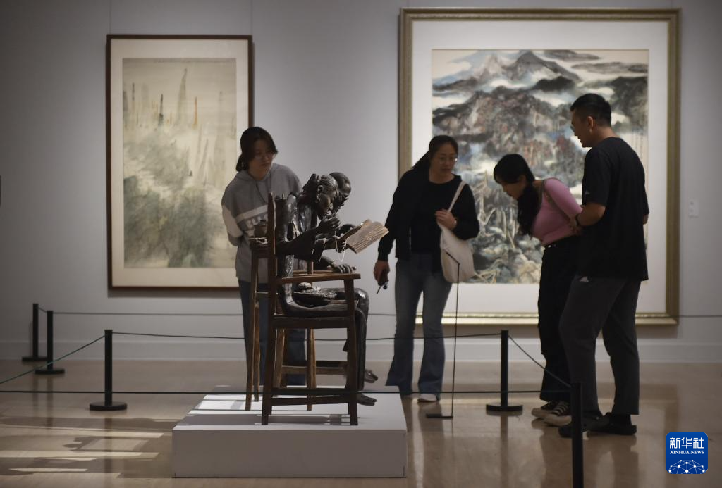 9月27日,觀眾在中國美術館參觀雕塑作品《苦旅共甘泉》。