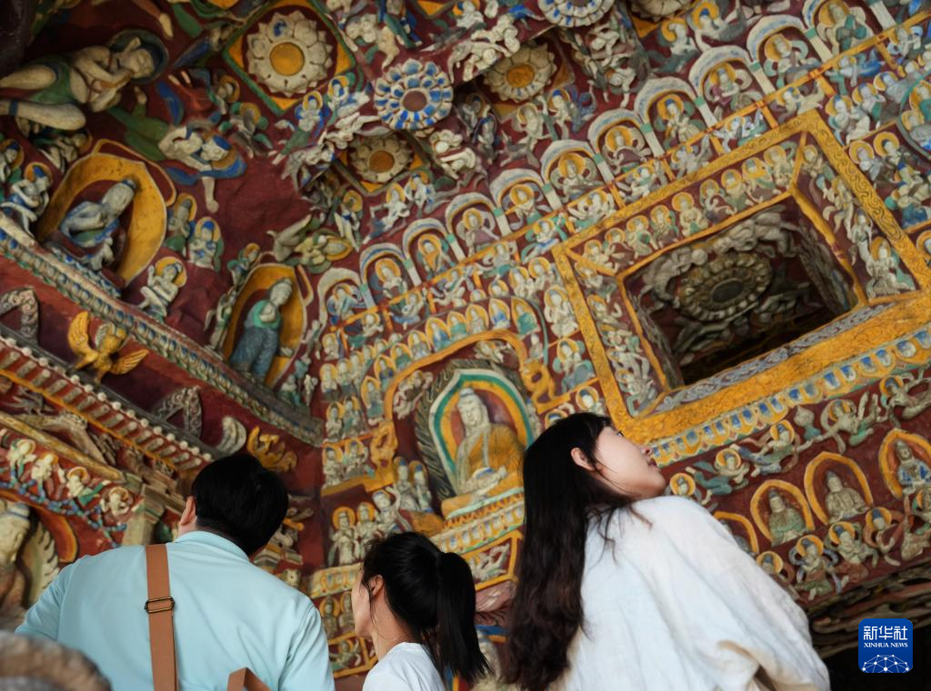 10月9日,參觀者在趣看美術館參觀云岡文物。