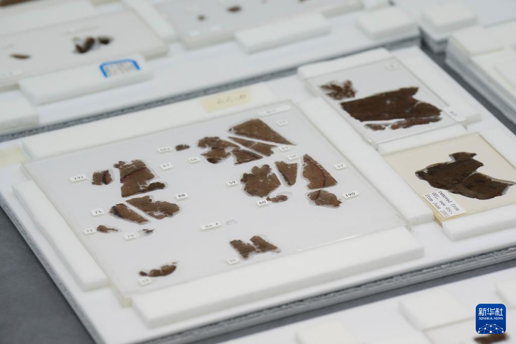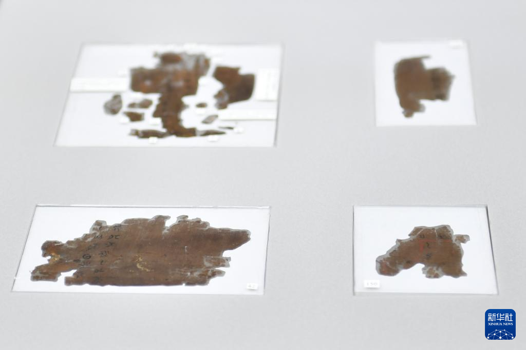 這是9月11日在湖南省博物館拍攝的部分長沙子彈庫戰國帛書。