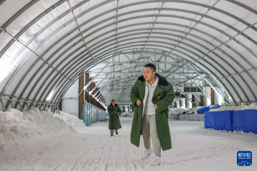 8月17日,王劍書體驗河北承德國家雪上項目訓練基地的四季訓練館雪道。