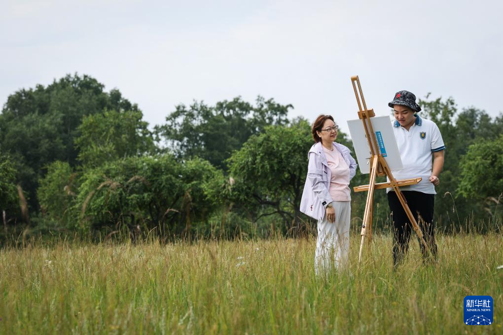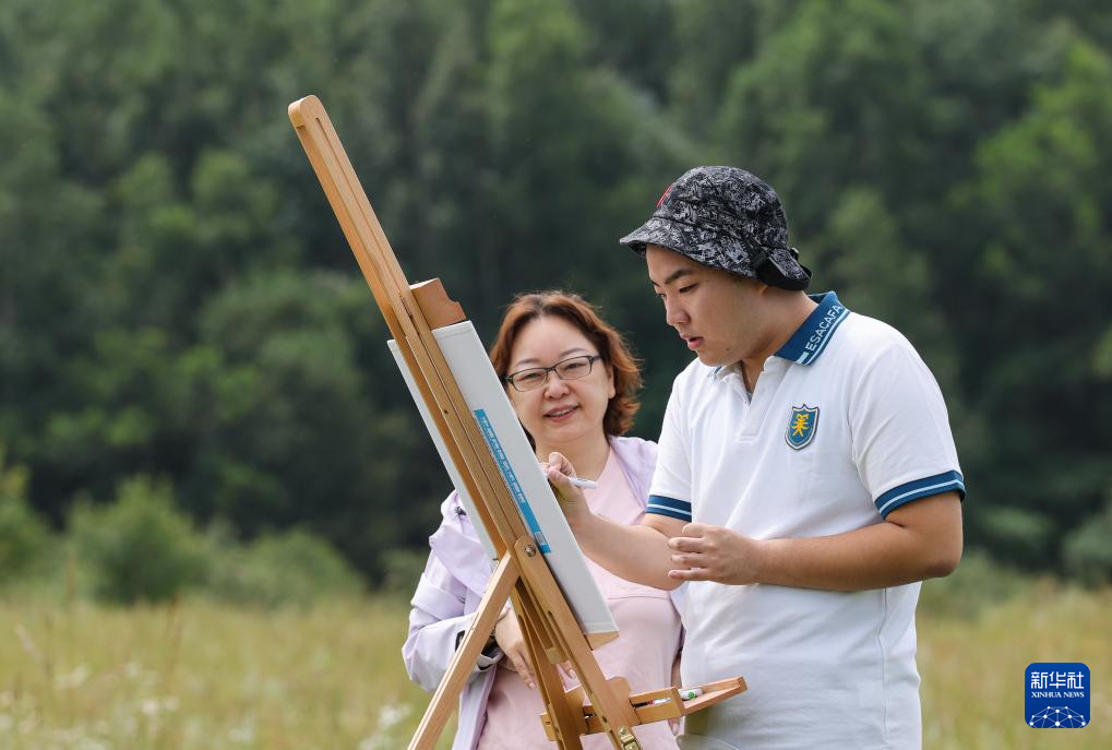 8月18日,媽媽陪伴王劍書在河北承德御道口草原寫生。