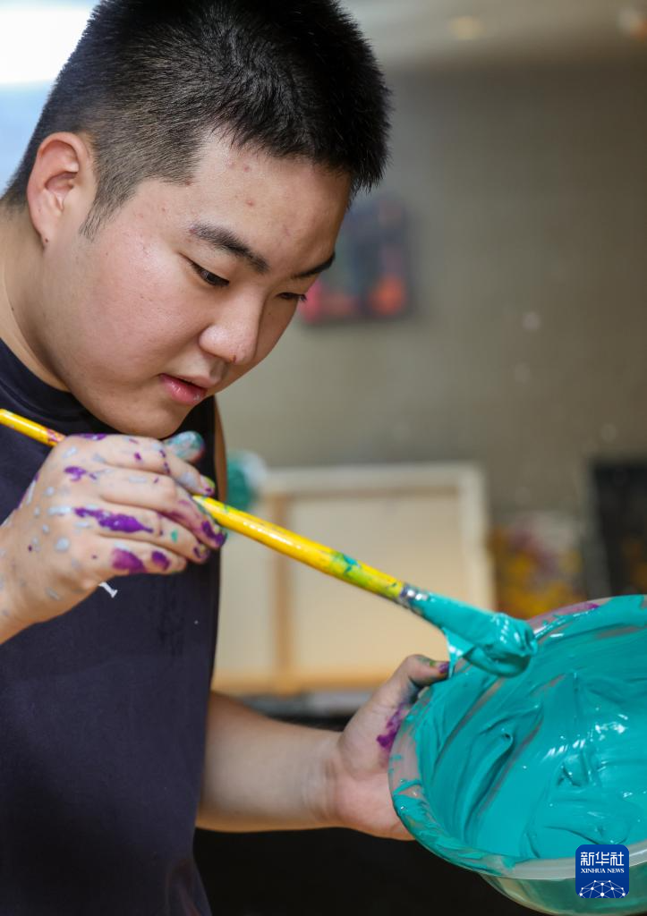 為幫他康復,父母嘗試了乒乓球、輪滑、音樂等多種訓練。美術課上,王劍書展現出對色彩的敏感,他選用的顏色看似大膽碰撞,搭配在一起卻格外和諧舒適,充滿靈動創意。老師將這個發現告訴王劍書的母親,建議著重培養他的藝術能力。