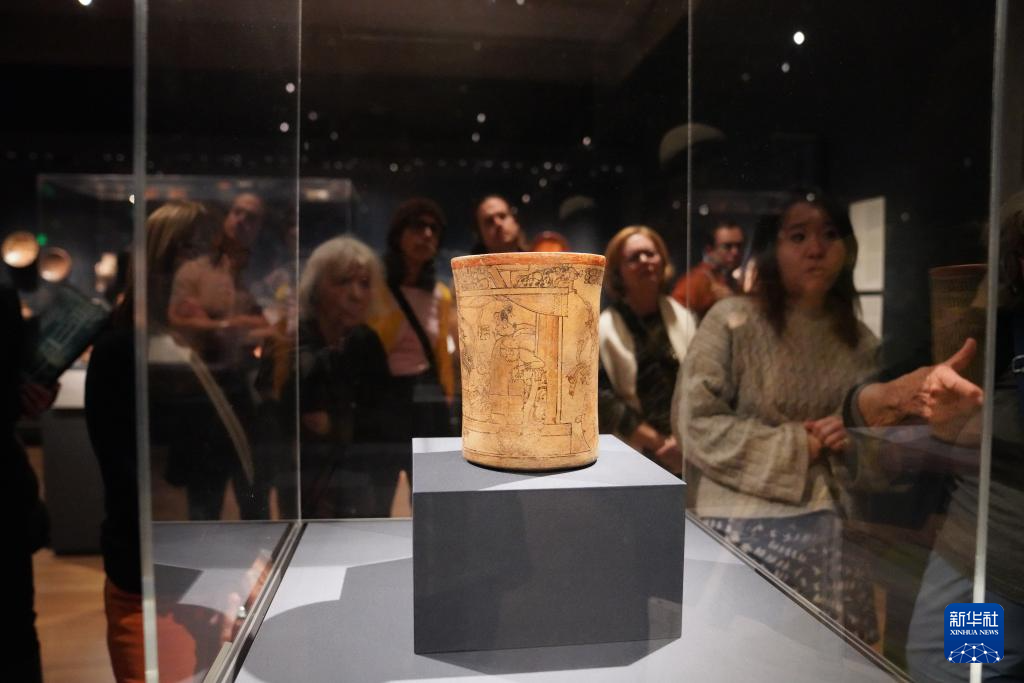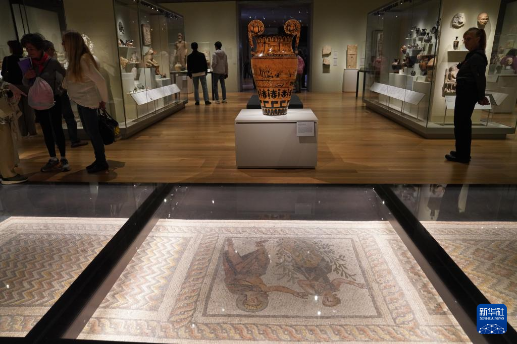 11月1日,在美國新澤西州,人們在普林斯頓大學藝術博物館欣賞一件古希臘飲水杯。