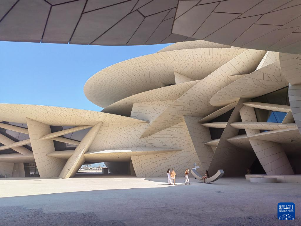 這是11月3日在卡塔爾首都多哈拍攝的卡塔爾國家博物館外景。