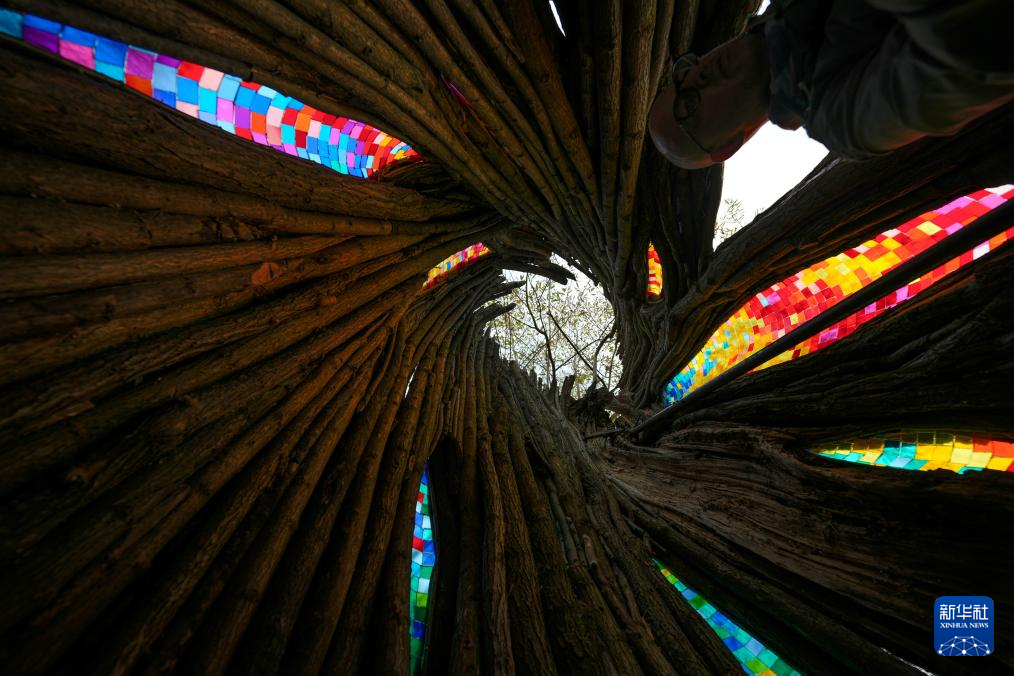 在波蘭華沙,一棵古老的柳樹在中空、枯萎后被藝術家以彩色玻璃、金屬和木質結構修復裝飾成藝術景觀,被稱作“柳樹神殿”。