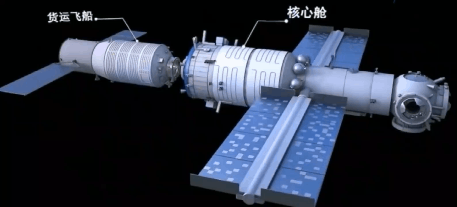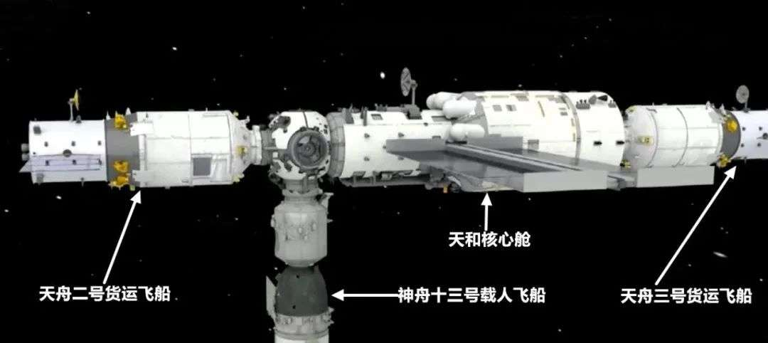 天和核心艙前向、后向、徑向端口上對接的飛船示意圖。來源:36kr