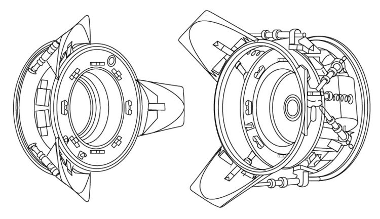 這一設計有效統一了主/被動對接機構的主體結構設計,被各國研制者所接受。蘇/俄的對接機構升級到了APAS-89和APAS-95,在緩沖裝置上分主被動,但導向結構保持同構,至今仍在國際空間站服役。歐洲新研的自適應電磁式對接機構也采用了類似的導向瓣。我國的對接機構同樣屬于導向瓣內翻的異體同構周邊式對接機構。