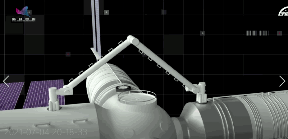 中國空間站機械臂抓取飛船再對接示意圖。來源:科普中國