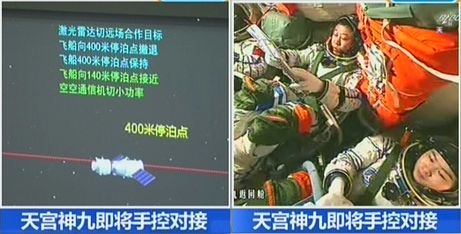 神舟九號-天宮一號手動交會對接中的停泊點設置。來源:CCTV