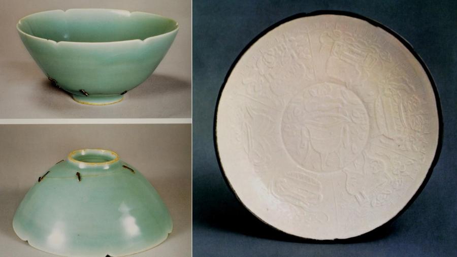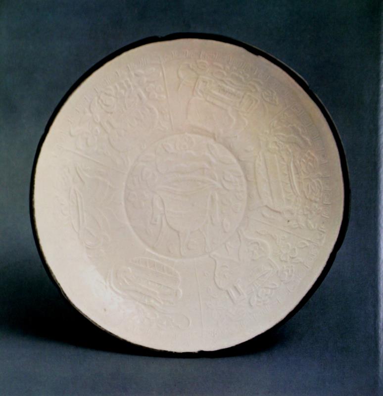 定窯的代表性窯場位于今天河北曲陽,從晚唐開始,這里就以燒造白瓷著稱。在北宋早期,定窯白瓷若帶裝飾,手法多用刻劃花,此后則常為印花。