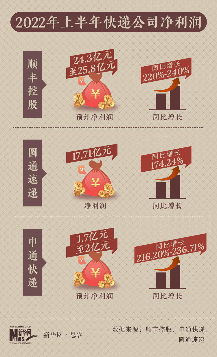 各大快遞公司也陸續發布上半年業績報告,顯示出市場整體回暖向好態勢。其中順豐控股實現凈利潤預計在24.3億元至25.8億元,同比增長220%至240%;圓通上半年實現凈利潤17.71億元,同比增長174.24%;申通也終于扭虧為盈,預計實現凈利潤1.7億元至2億元,同比增長216.20%至236.71%。
