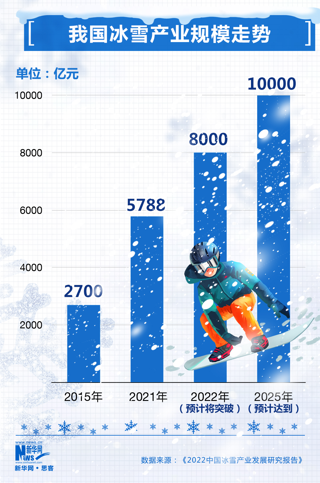 我國具有發展冰雪產業的天然稟賦。以成功舉辦冬奧會為契機,短短幾年間,我國冰雪產業“出山海關”“過長江”“越秦嶺”,形成了“東南西北遙相呼應、四季經營各具特色、冰上雪上全面開花”的新格局?!?022中國冰雪產業發展研究報告》稱,我國冰雪產業市場規模增幅明顯,2022年冰雪產業總規模預計將超過8000億元,并有望在2025年步入成熟期,市場規模突破1萬億元。