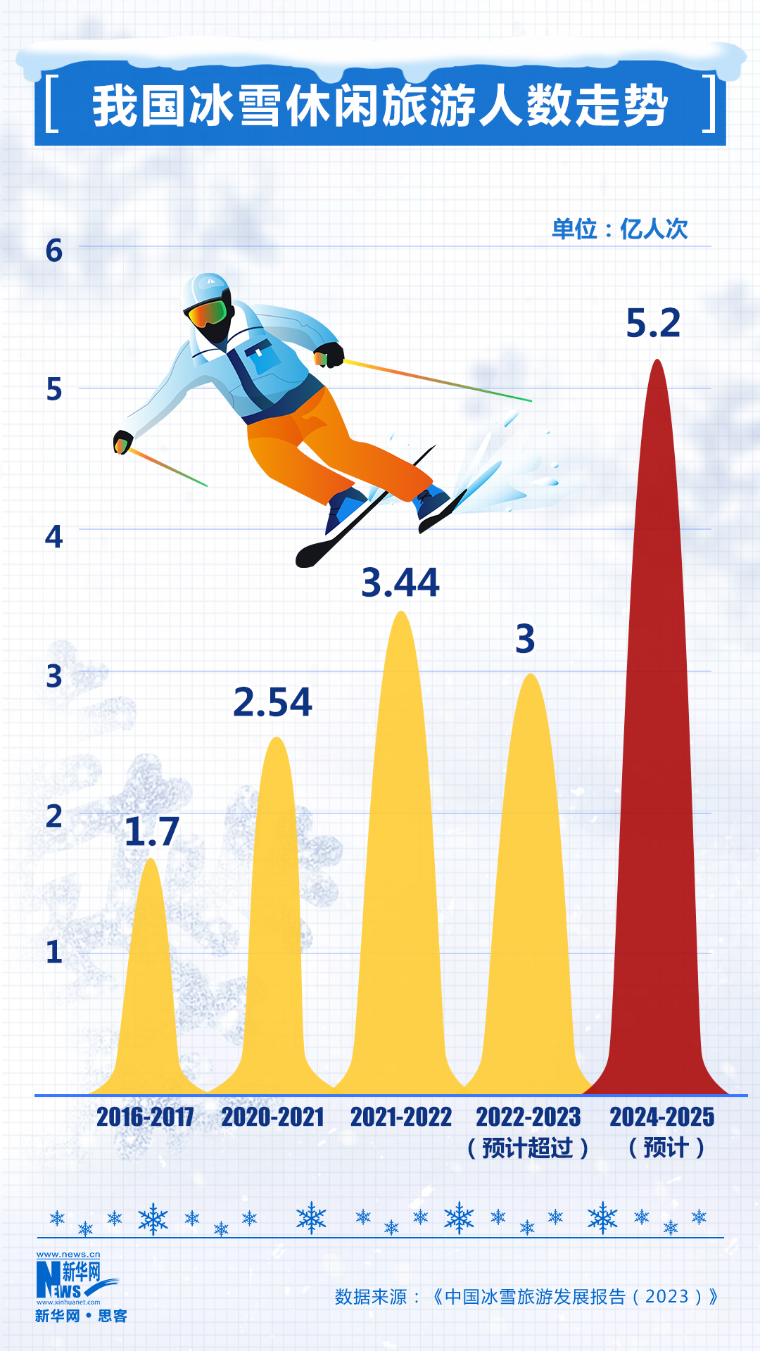 《中國冰雪旅游發展報告(2023)》預測,在本地市場消費潛力持續釋放和遠程冰雪游復蘇下,預計2022至2023年冰雪季我國冰雪休閑旅游人次仍會超過3億;“十四五”末期的2024至2025年冰雪季我國冰雪休閑旅游人次有望達到5.2億。