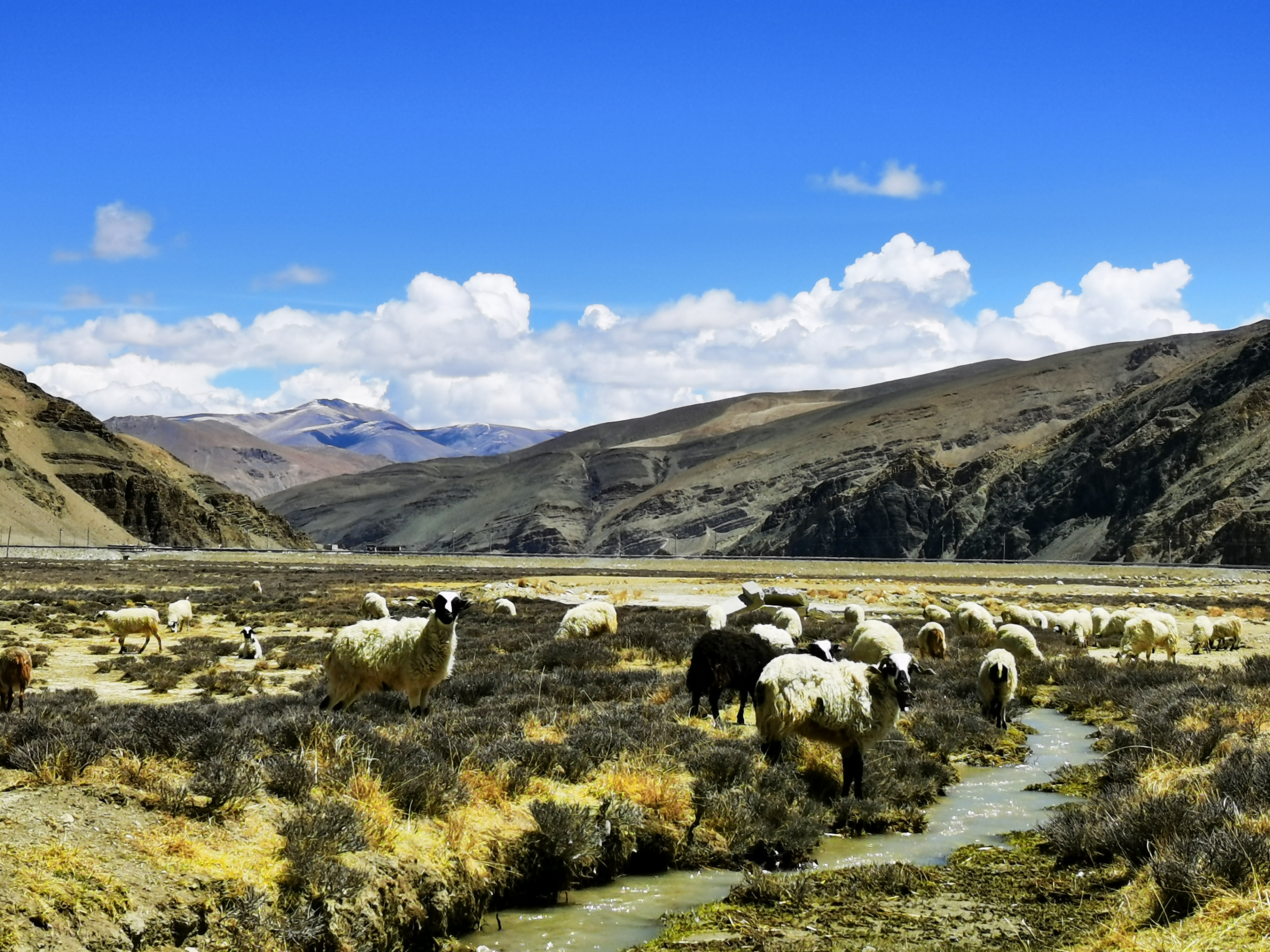 ▲這是珠峰自然保護區中心地帶扎西宗鄉的羊群。新華社記者 沈虹冰 攝