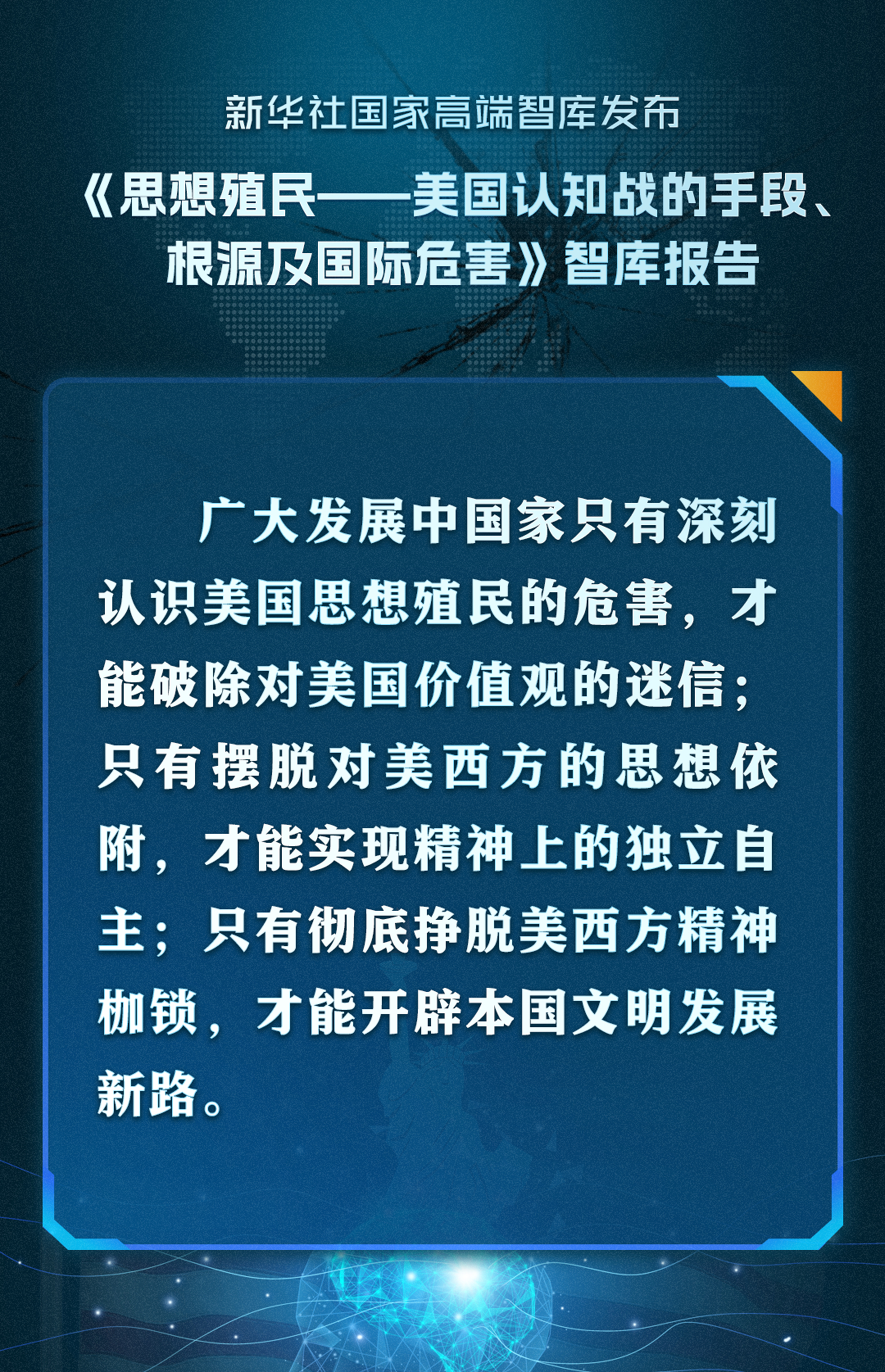 9月7日,新華社國家高端智庫在云南昆明舉行的2025全球南方媒體智庫高端論壇上,發布智庫外宣報告《思想殖民——美國認知戰的手段、根源及國際危害》。