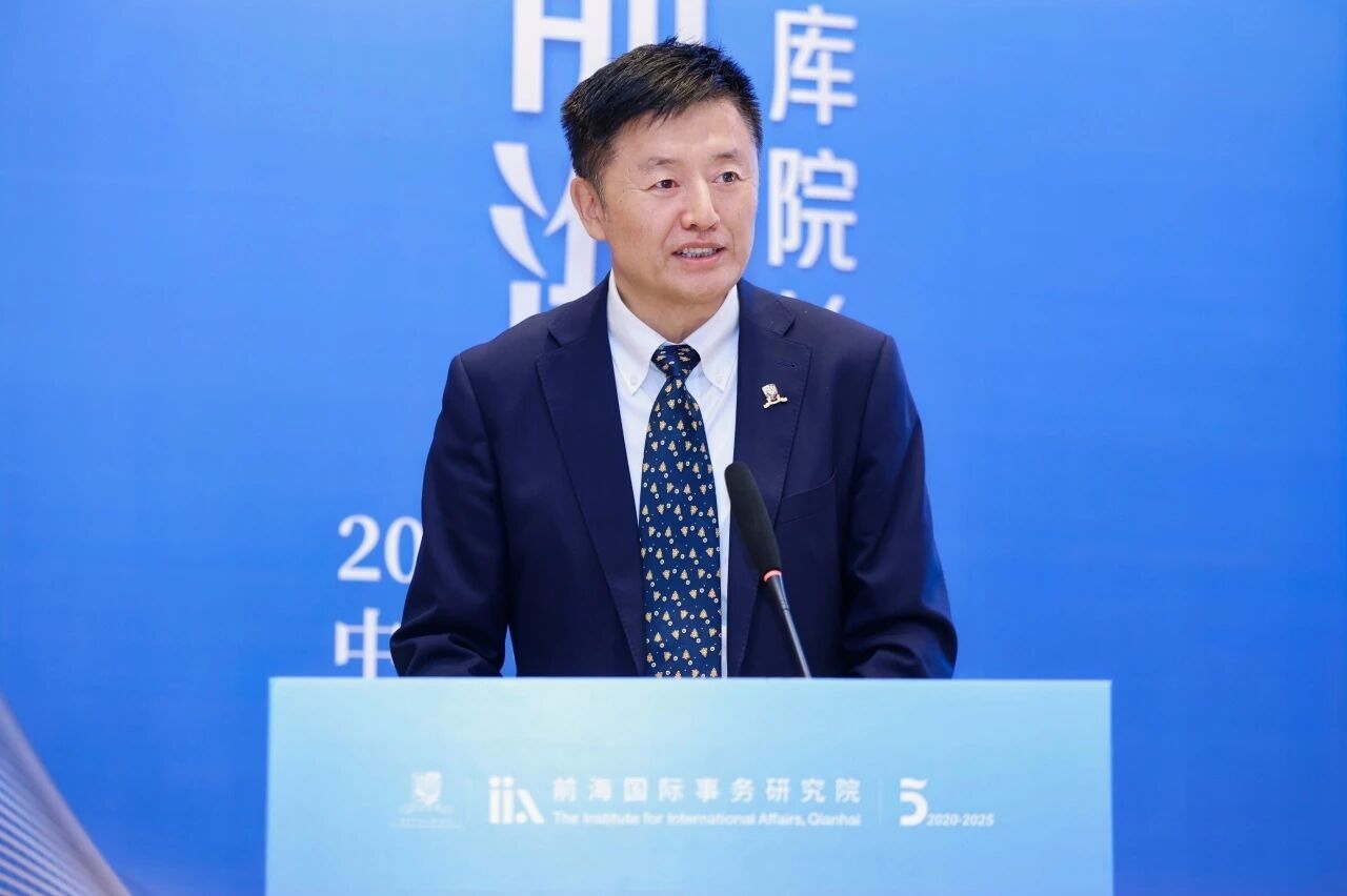 香港中文大學(深圳)黨委書記、協理副校長李學金代表大學致辭。他首先對前海國際事務研究院成立五周年表示熱烈祝賀,并高度肯定了研究院在過去五年中,作為校地深度合作的重要成果,已成長為服務國家戰略決策的國家級戰略力量,是深圳乃至全國智庫建設的一面旗幟。