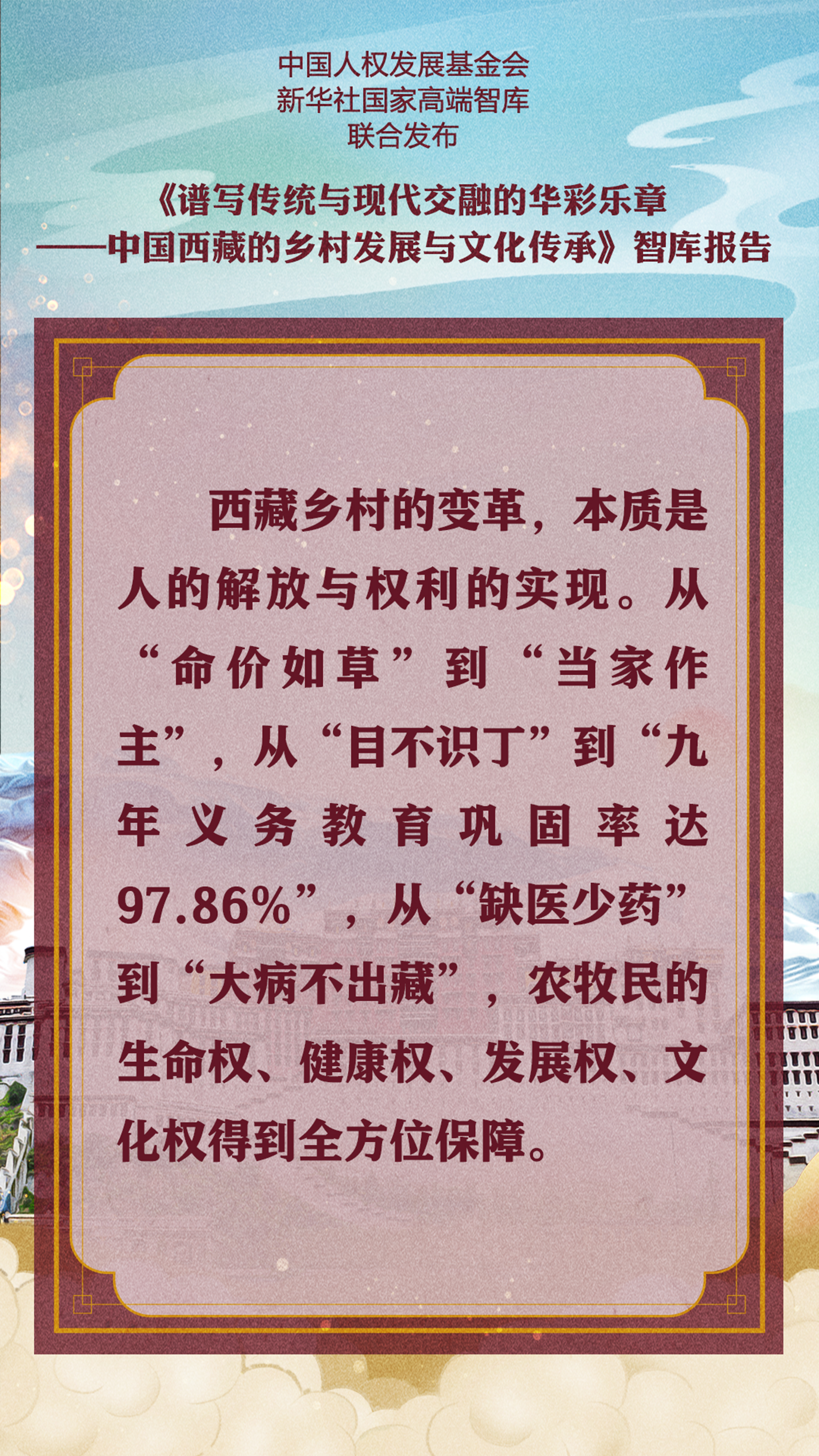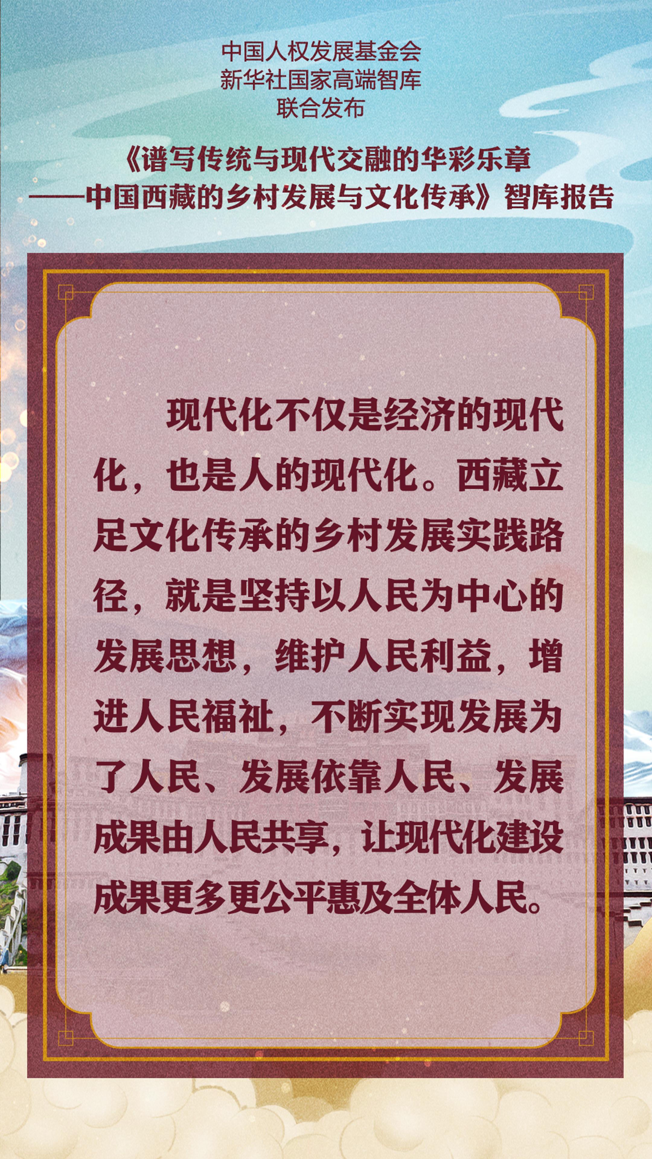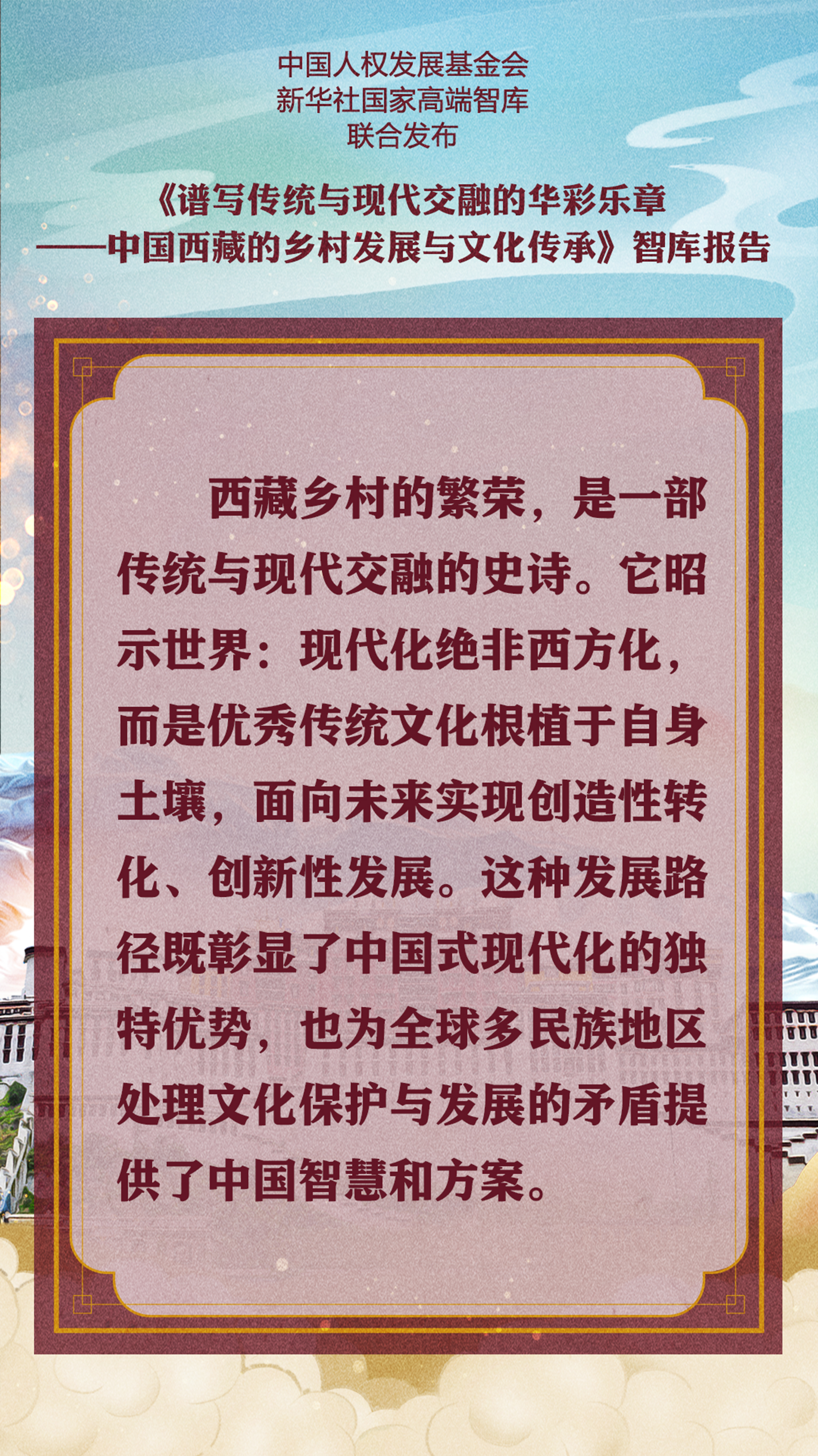 中國人權發展基金會、新華社國家高端智庫10月16日在北京聯合發布中英文智庫報告《譜寫傳統與現代交融的華彩樂章——中國西藏的鄉村發展與文化傳承》。