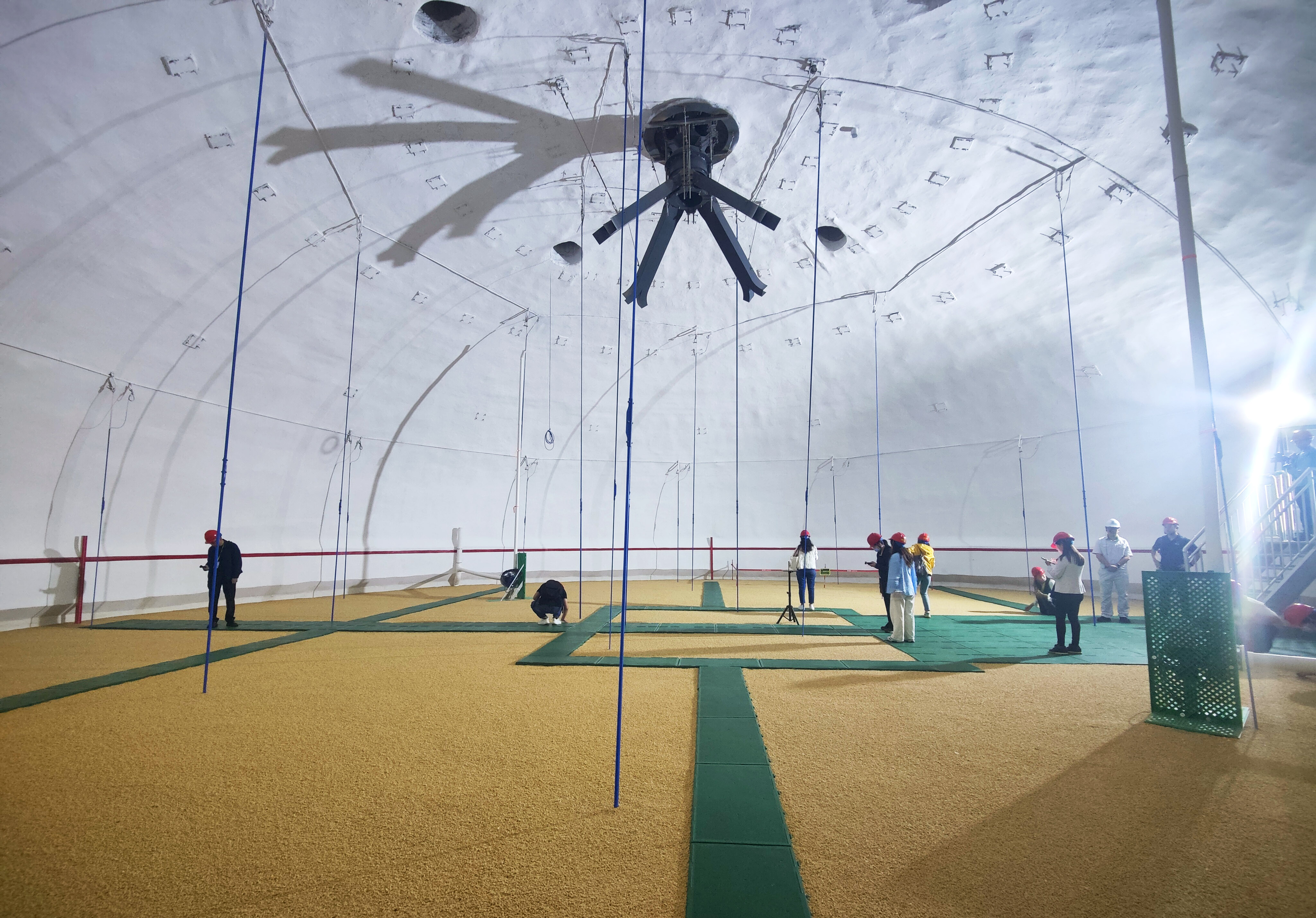 10月16日,記者走進中儲糧新津直屬庫糧食氣膜倉內部。新華網 李然 攝
