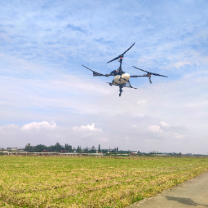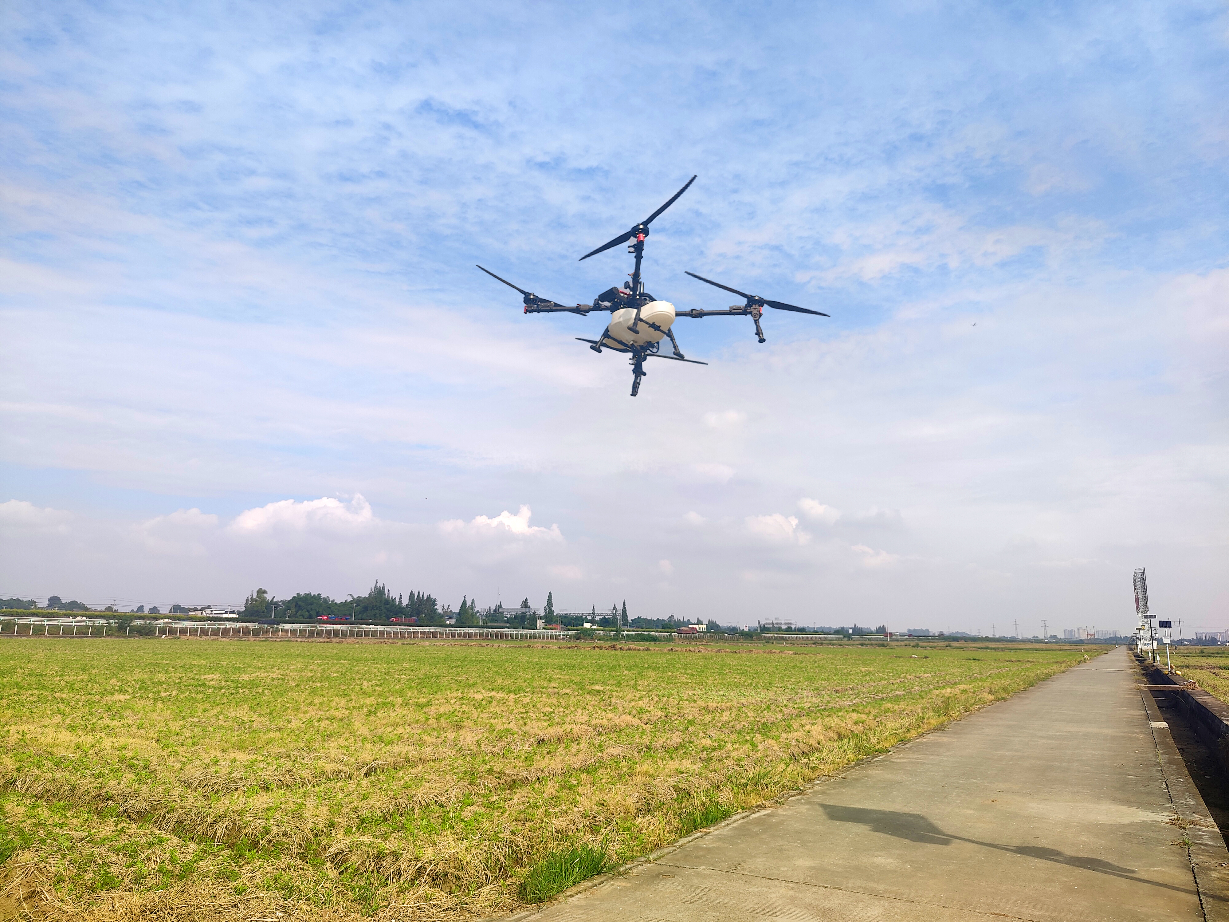 10月14日,在四川省眉山市東坡區永豐村高質量農田里,植保無人機在田內作業。新華網 李然 攝
